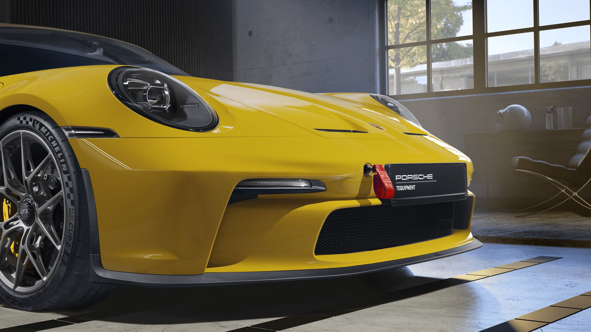 Optional towing loops in red, black, or yellow for track use—front and rear mounted, removable for street legality.