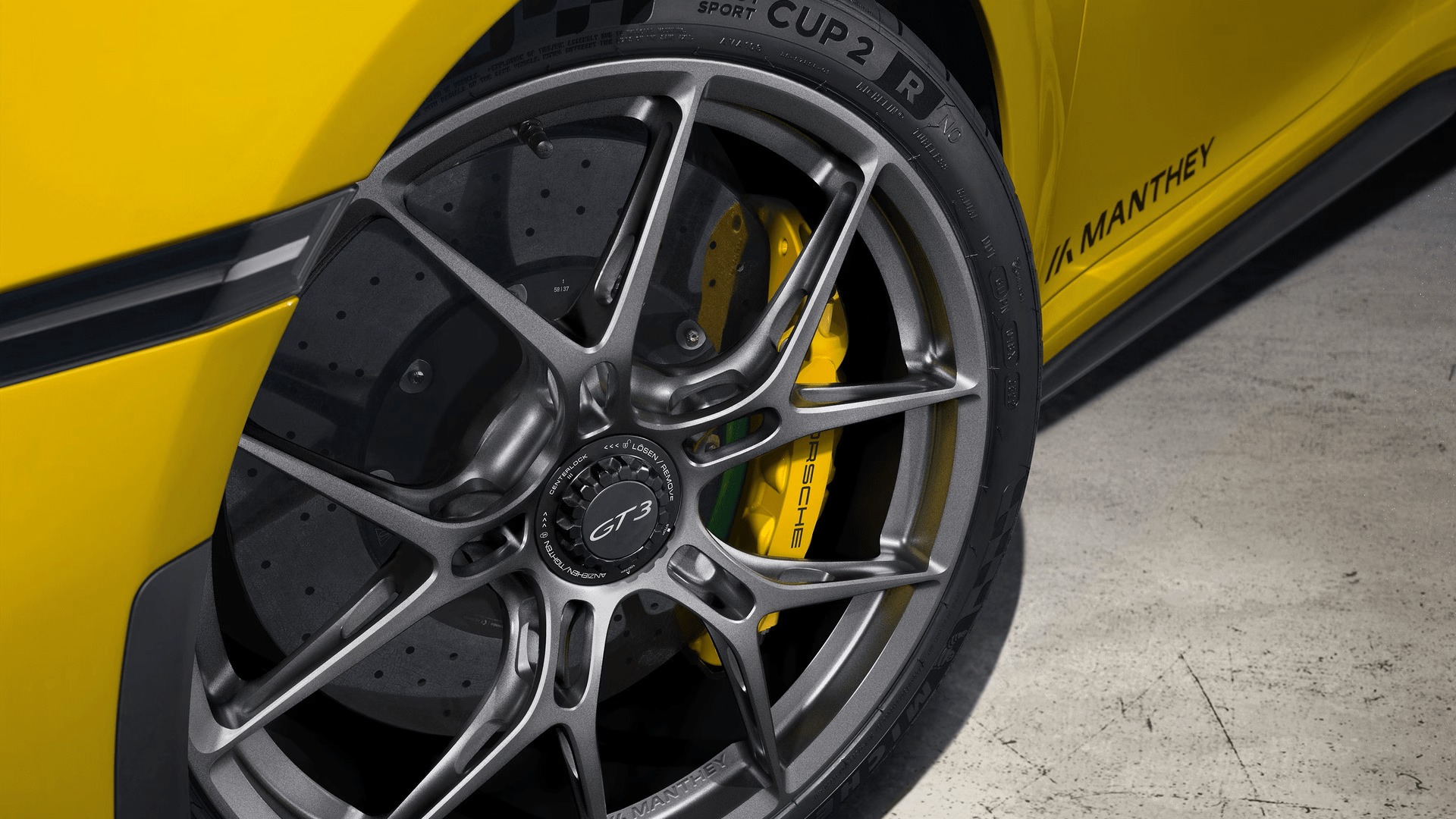 Standard 20/21-inch fitment. Compatible with 255/35 ZR 20 front and 315/30 ZR 21 rear tires. Porsche recommends Michelin Sport Cup 2 R for maximum capability.