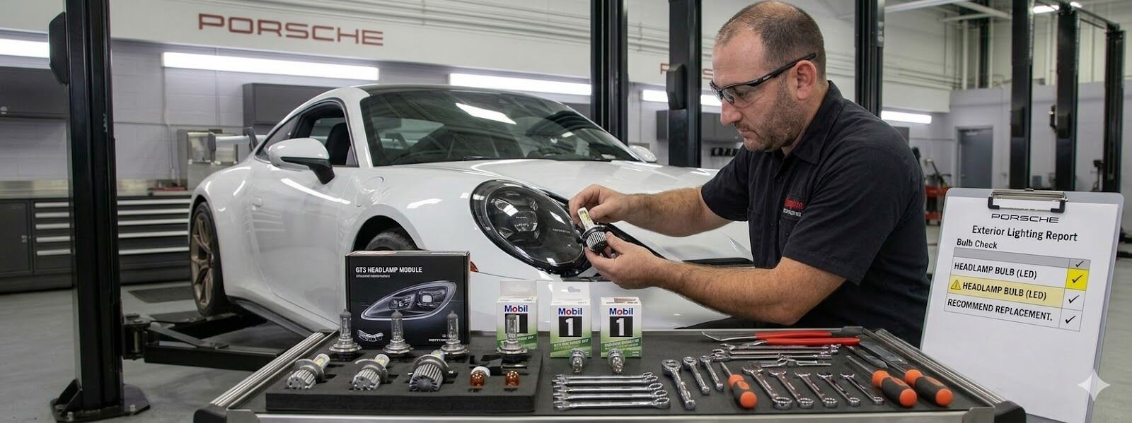 OEM Porsche bulbs | LED upgrades available | Headlight alignment included